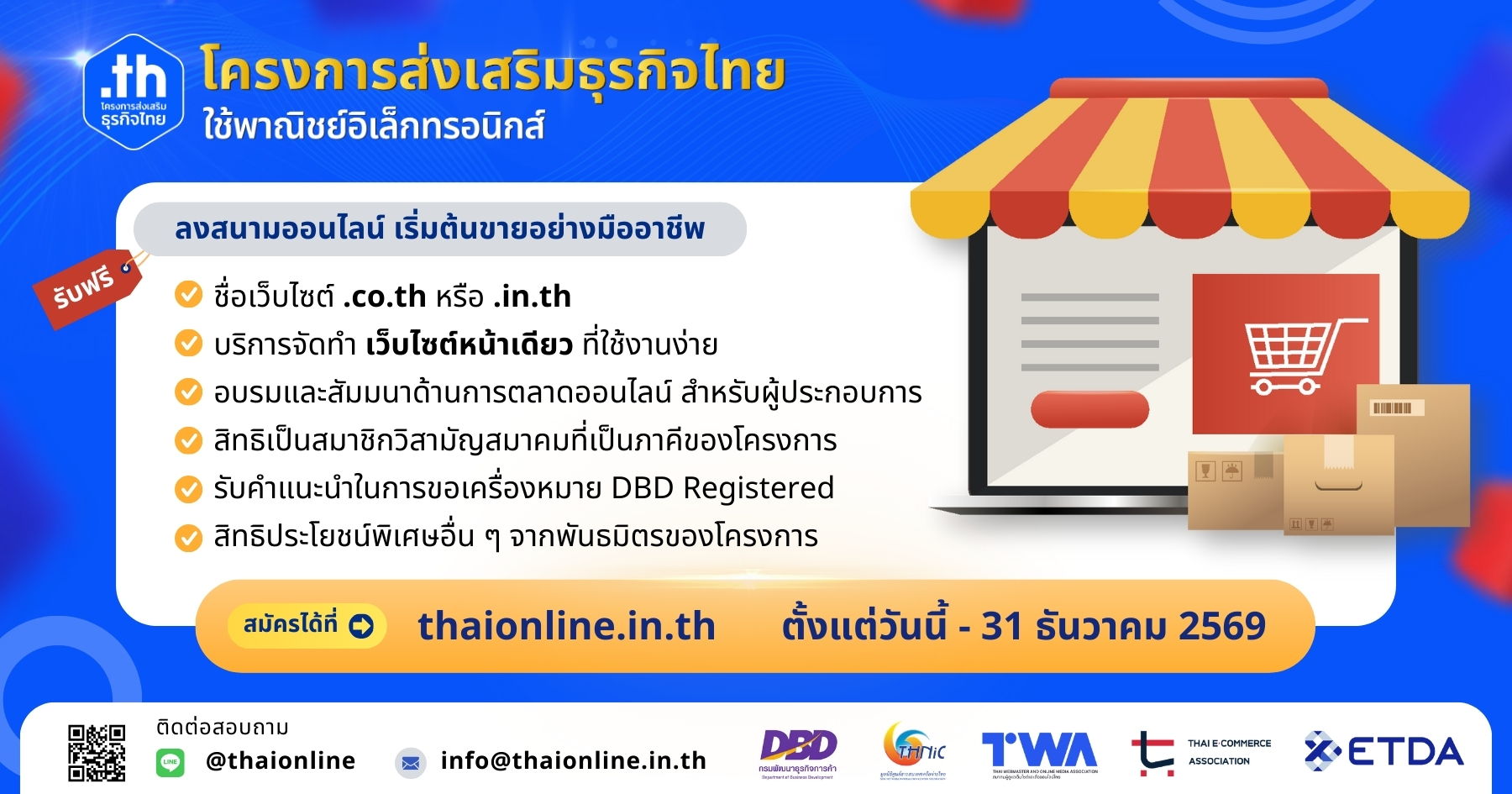 *หมายเหตุค่าบริการหลังเข้าร่วมโครงการครบ 1 ปี: ค่าต่ออายุโดเมน และค่าสมาชิกสมาคมที่เลือก